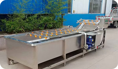 Innovative patented wash machine cleans produce safely, removing impurities, ensuring fresh, hygienic market readiness.